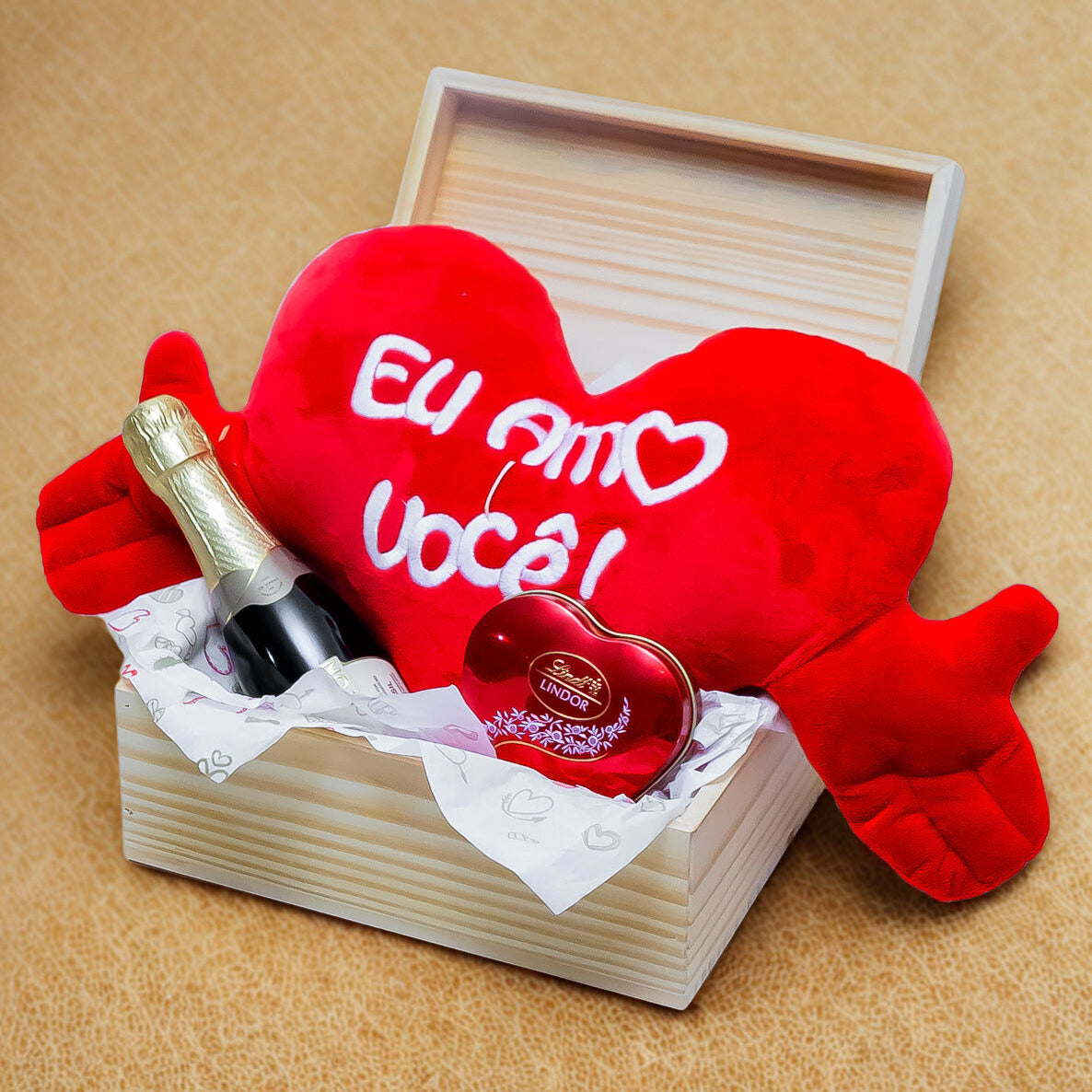 O destaque é a almofada em formato de coração, em tamanho grande, perfeita para simbolizar a presença constante de quem ama. Acompanhando esse gesto de carinho, o espumante Chandon Baby Brut convida a brindar momentos especiais com leveza e sofisticação. A doçura fica por conta da lata Lindt Lindor em formato de coração, trazendo cremosidade e refinamento à experiência.