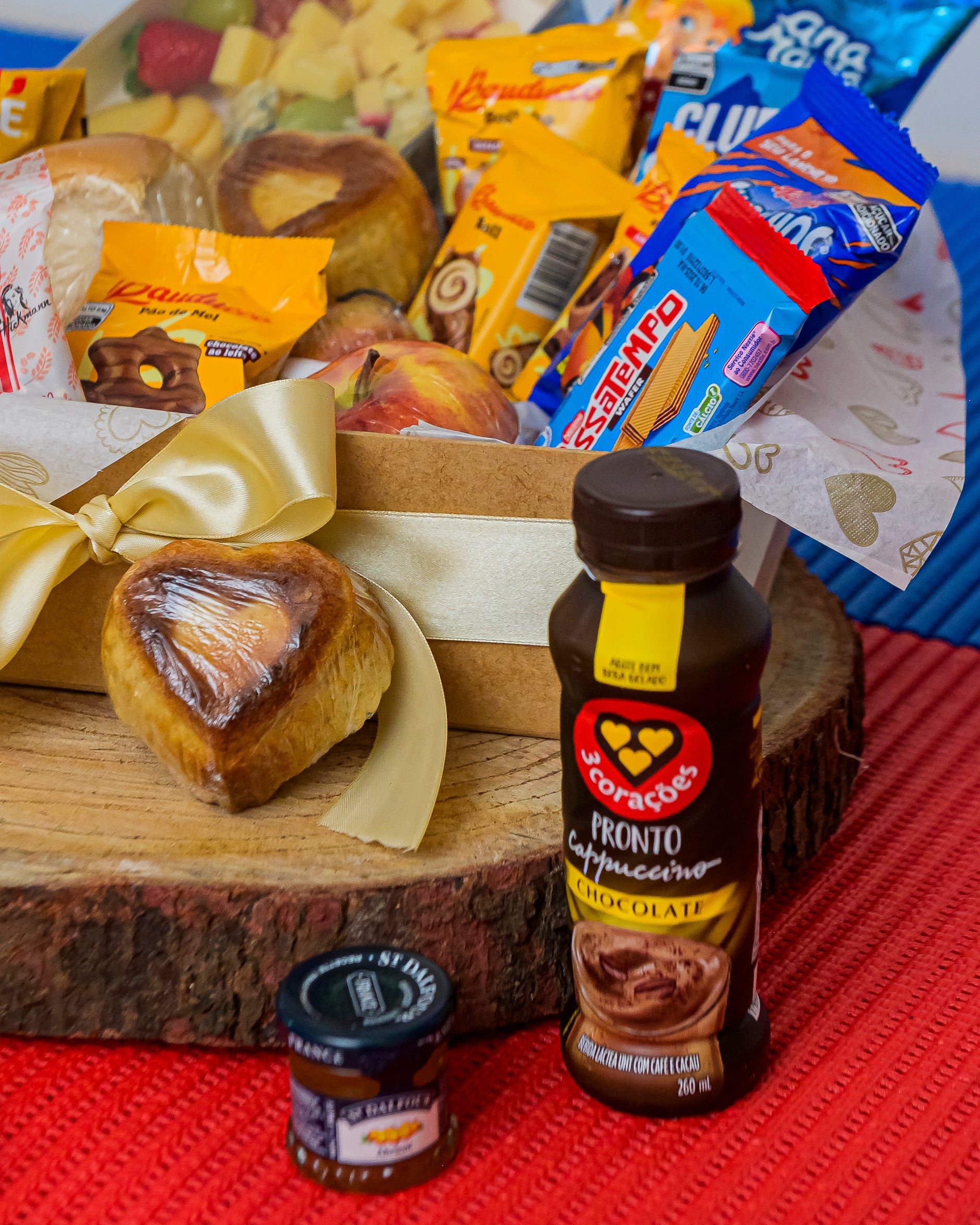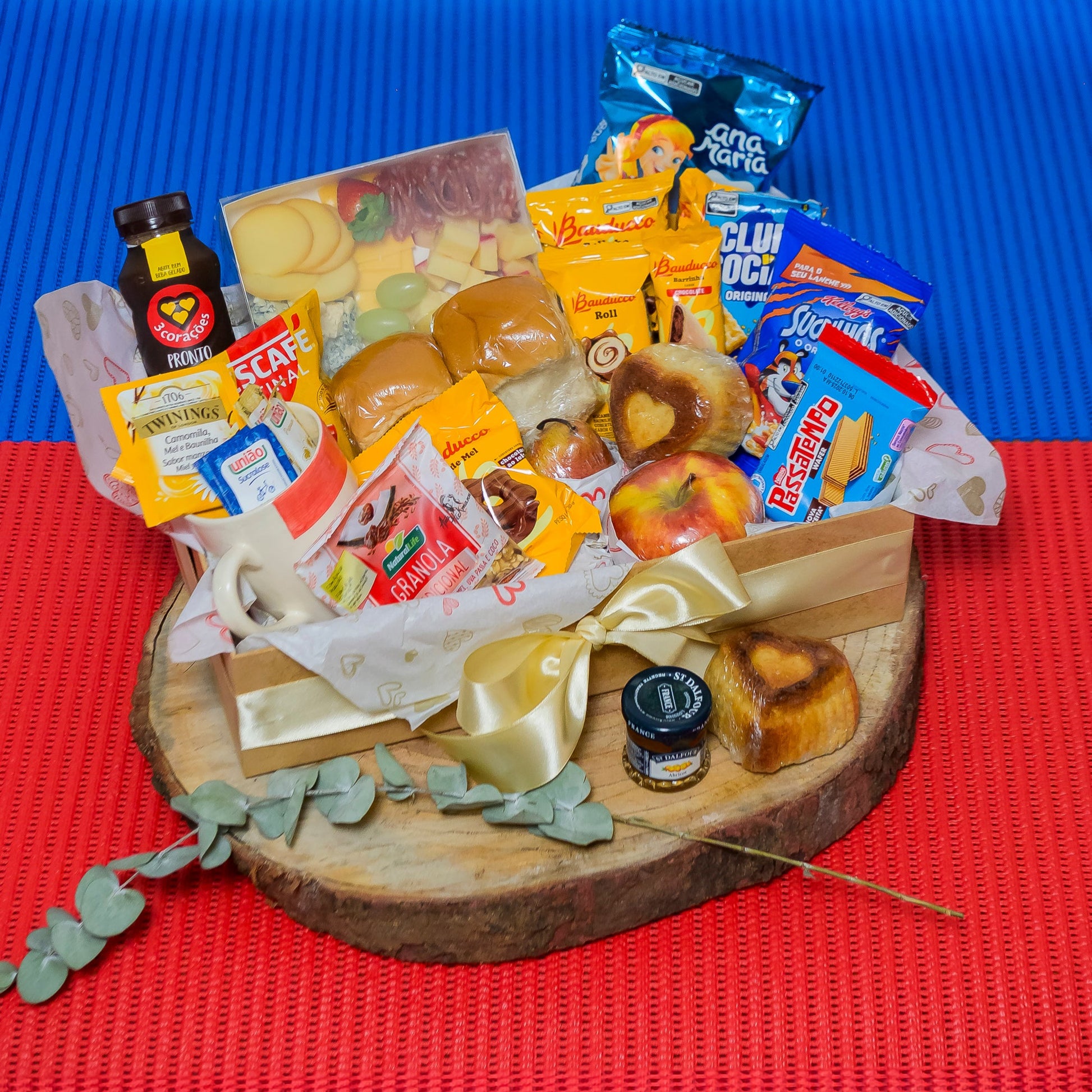 Cada item compõe um ritual delicado de presença e carinho, servido com elegância. Tudo é entregue sobre uma charmosa bandeja de madeira e finalizada com celofane e fita de cetim, pronta para emocionar e ser lembrada.