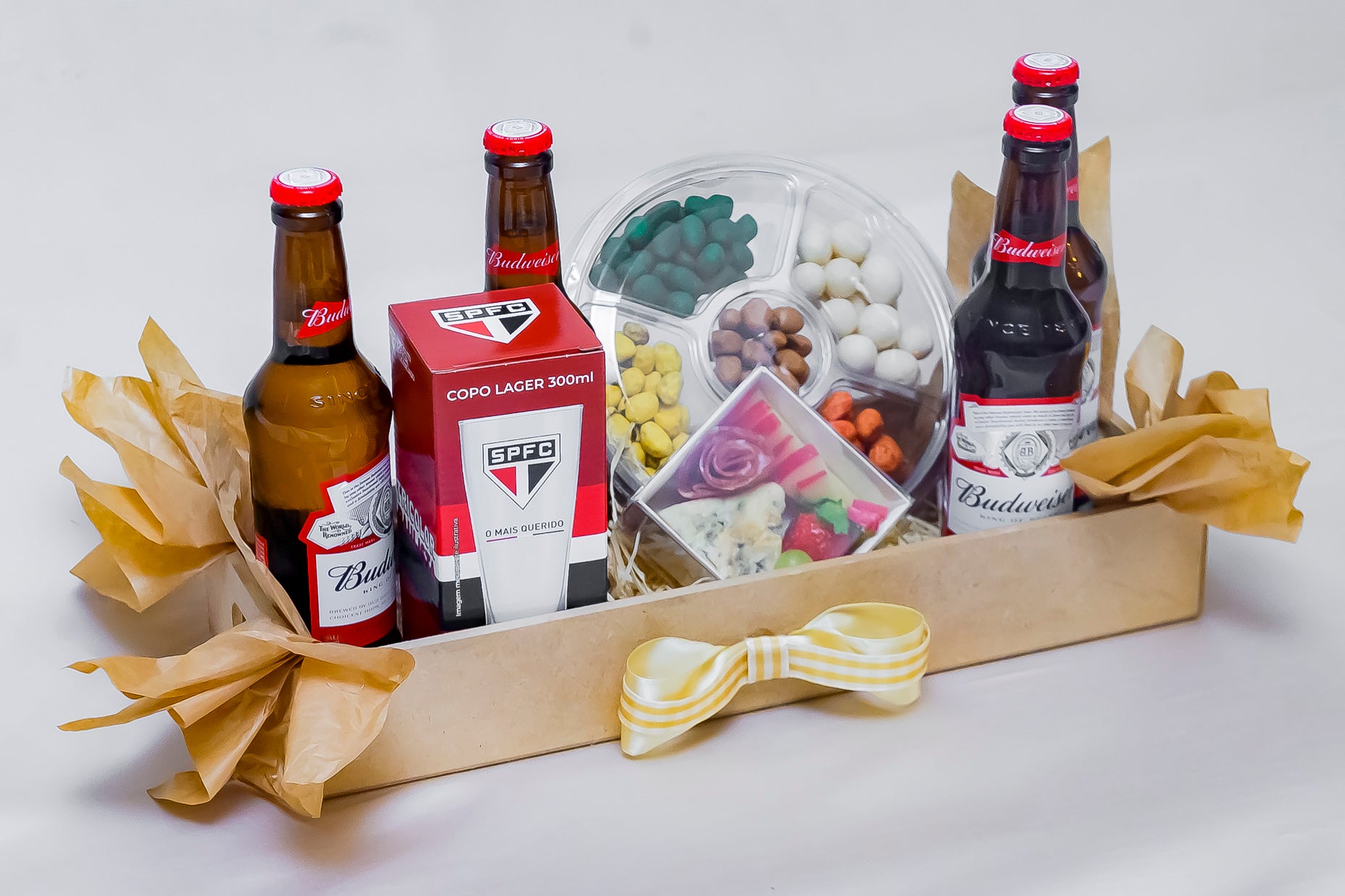 O Grandh’A Torcida com Estilo traz uma seleção perfeita para brindar, petiscar e torcer com elegância. São 4 cervejas Budweiser long neck (330ml), geladas na medida certa para momentos descontraídos. A taça de time licenciada dá o tom pessoal e autêntico do presente, tornando cada gole ainda mais especial.