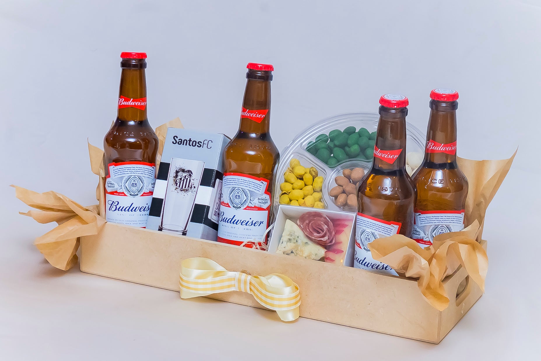 O Grandh’A Torcida com Estilo traz uma seleção perfeita para brindar, petiscar e torcer com elegância. São 4 cervejas Budweiser long neck (330ml), geladas na medida certa para momentos descontraídos. A taça de time licenciada dá o tom pessoal e autêntico do presente, tornando cada gole ainda mais especial.